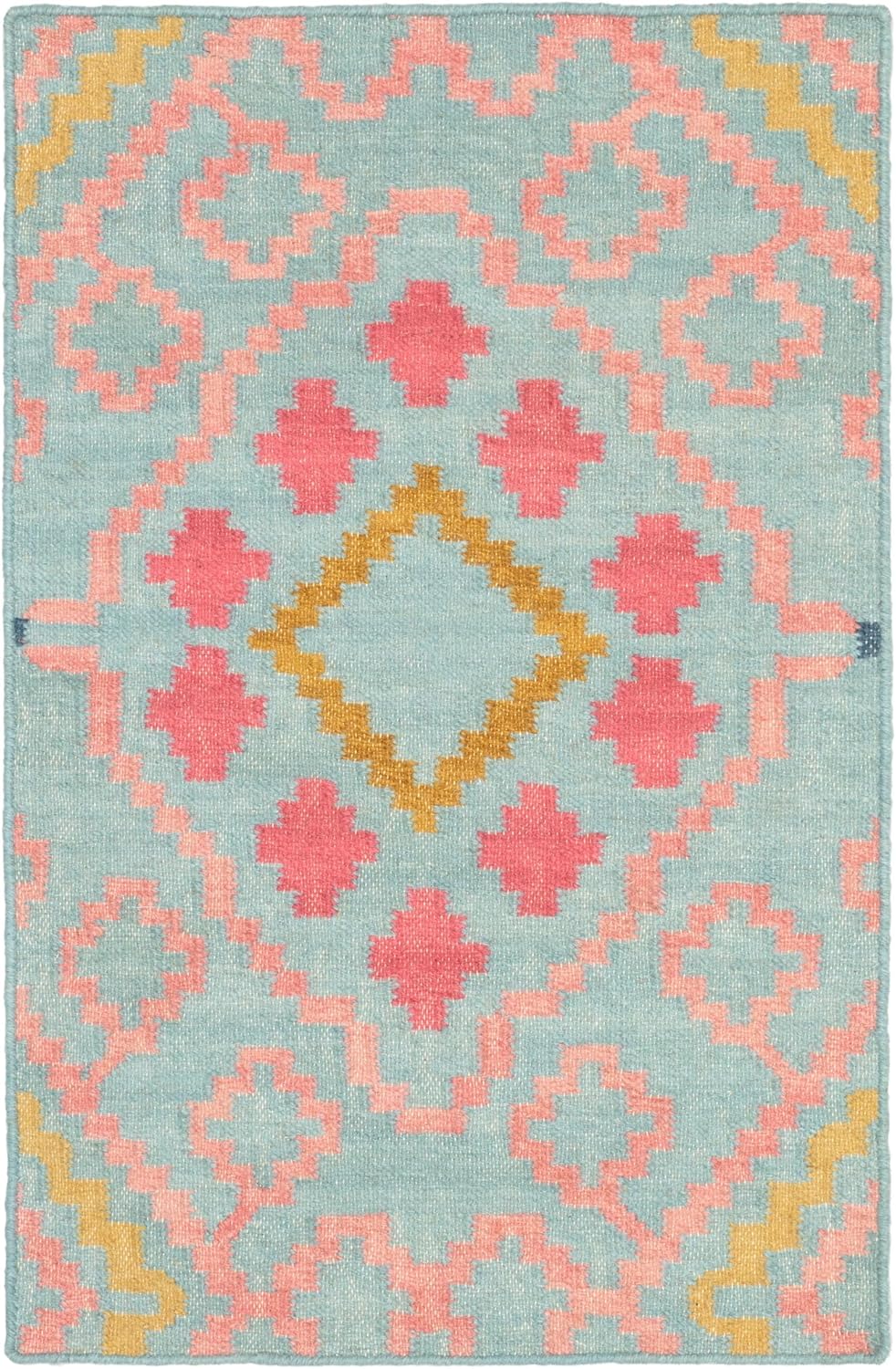 Dash and Albert Jelly Roll Wool Area Rug - 2' x 3' Sky Blue Geometric Handwoven Accent Rug - Durable, Low Pile, High Traffic Area Hallway, Living Room, Stairs