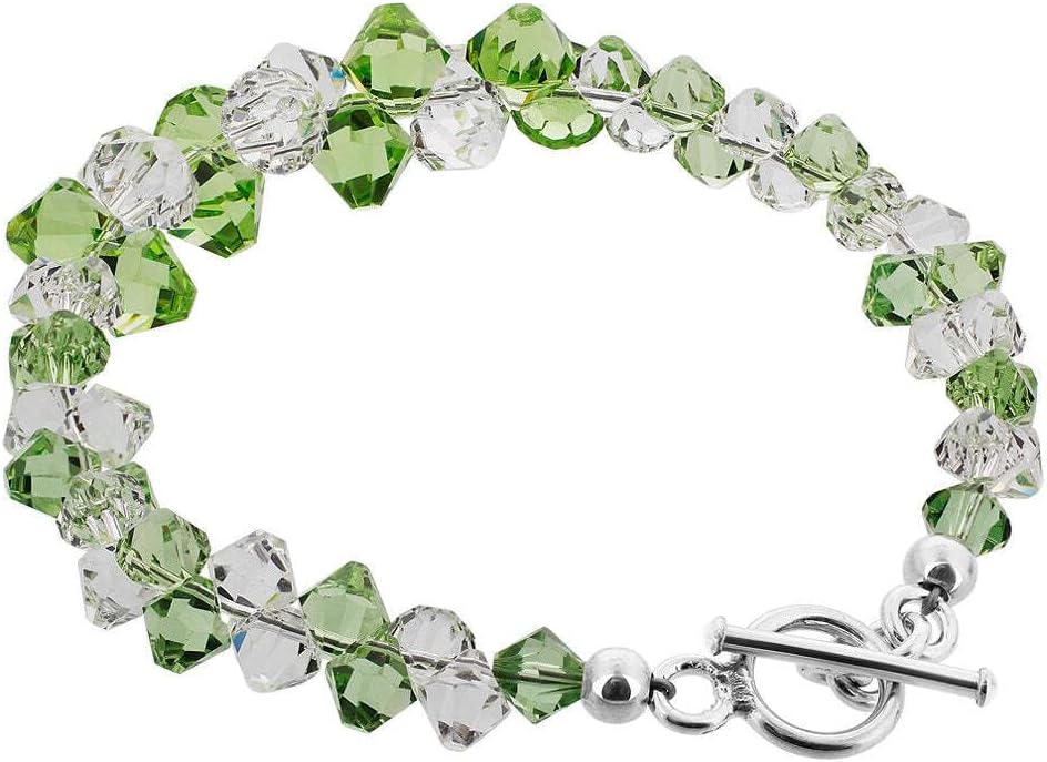 925 Gorgeous hand-crafted 7.5-inch bracelet with Cluster Style Bicone Austrian Crystals and 925 sterling silver toggle clasp with round bead accents. This stunning piece features a bouquet of hues in a variety of shapes, sizes, and faceted effects with smaller crystals accented throughout. Remember to check out our complementing crystal items for a perfect ensemble.
