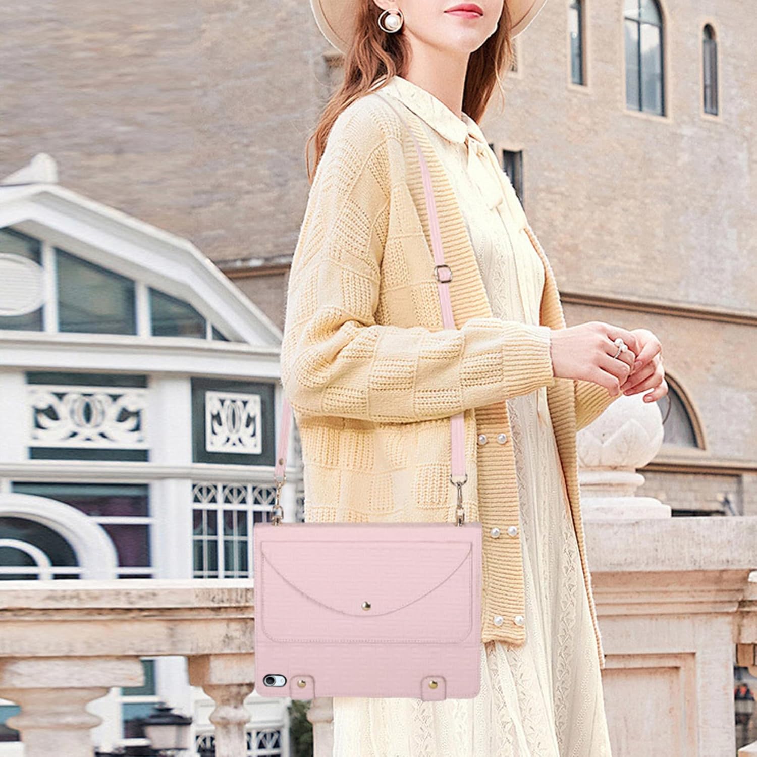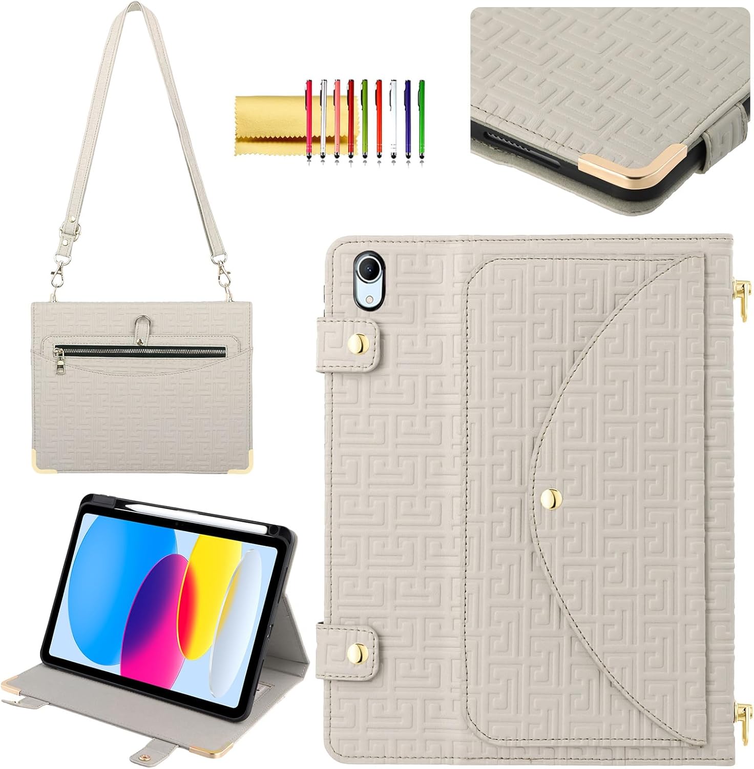 Practical iPad Pro 13 Inch 2024 Case for Women, Built-in Pencil Holder, 4 Card Slots, Corner Protection, Shoulder StrapCompatibility:for Apple iPad Pro 13-inch 7th Generation 2024 release - model number: A2925 / A2926 Product Details:- Versatile design: Multi-functional shoulder bag case with unique maze pattern design, textured PU leather material, and detachable card holder for storing cards and cash. - Durable protection: Soft TPU inner base shell provides perfect fit for specific tablet, with metal reinforced corners for added protection against drops and cracks. - Convenient features: Built-in pen slot, stand function for easy video viewing, and ample storage space for cards and cash, eliminating the need for an extra wallet. - Adjustable strap: Detachable shoulder strap with a length of up to 120cm for hands-free travel convenience. Package Includes:1 x Handbag Case for iPad Pro 13 M4 2024 7th Gen1 x Shoulder Strap1 x Stylus Pen (Random Color)1 x Cleaning Cloth