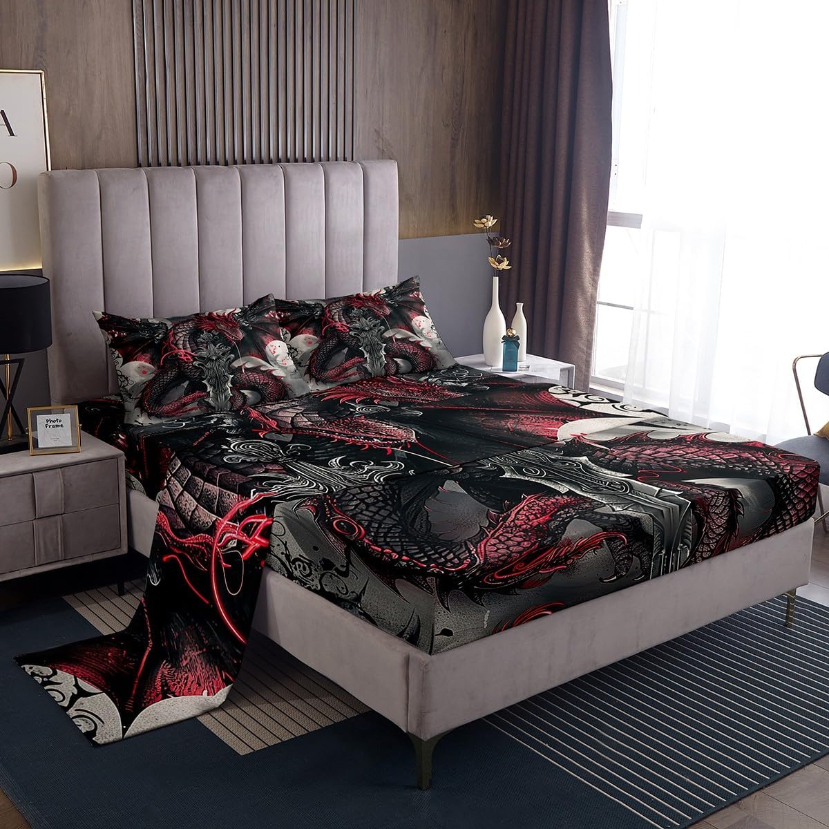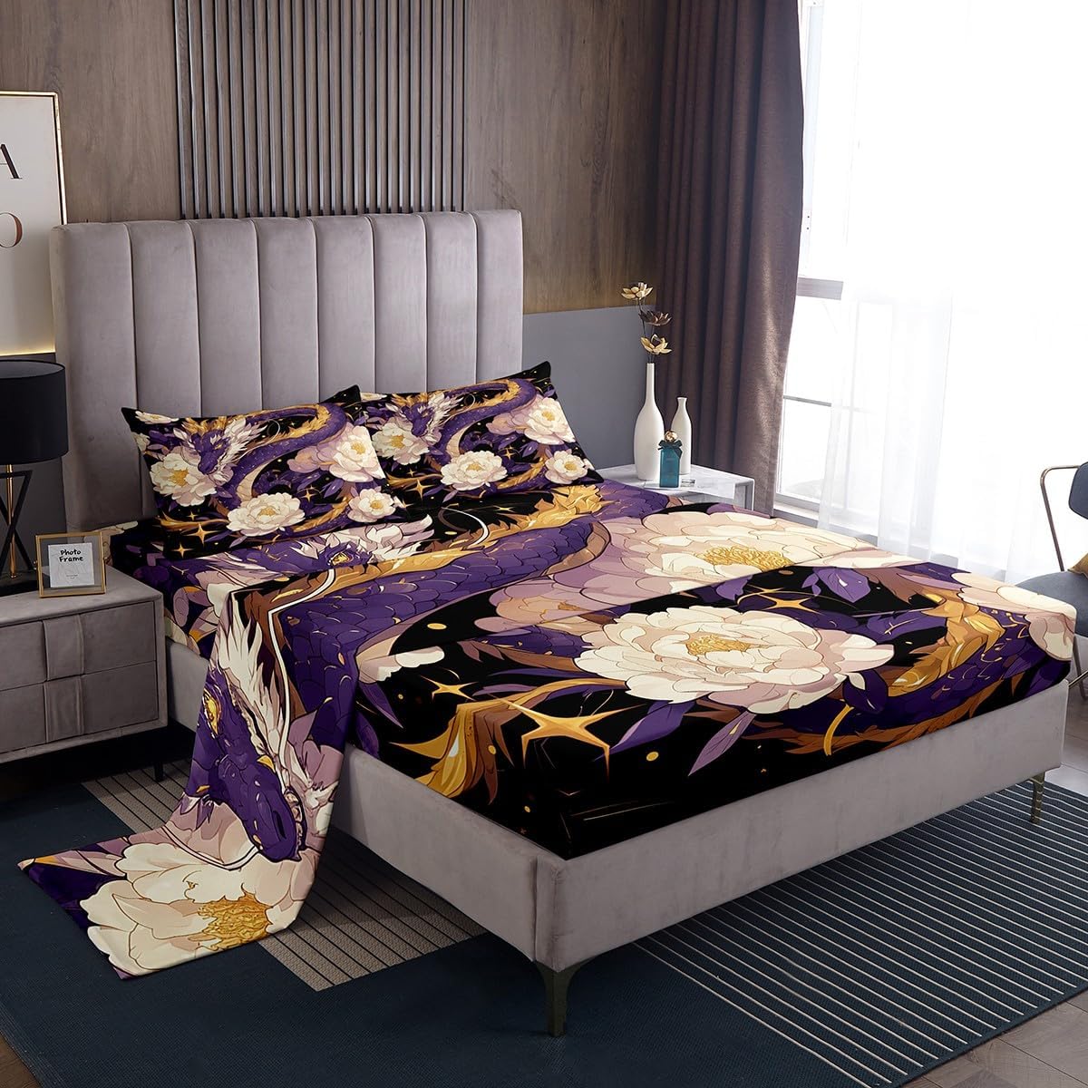 Package Include: Fitted Sheet, Flat Sheet and Pillowcase. High quality Fitted Sheet Set 3D Pattern Bedding Set, simply decorating your rooms any time you want, bringing you fresh feel for year round use. Size Information: Twin size 3pcs Fitted Sheet set: 1 Fitted Sheet 39"W x 75"L x 16"H, 1 Flat Sheet 66"W x 96"L, 1 pillowcase 20" x 30" Full size 4pcs Fitted Sheet set: 1 Fitted Sheet 54"W x 75"L x 16"H, 1 Flat Sheet 81"W x 96"L, 2 pillowcase 20" x 30" Queen size 4pcs Fitted Sheet set: 1 Fitted Sheet 60"W x 80"L x 16"H, 1 Flat Sheet 90"W x 102"L, 2 pillowcase 20" x 30" King size 4pcs Fitted Sheet set: 1 Fitted Sheet 78"W x 80"L x 16"H, 1 Flat Sheet 90"W x 106"L, 2 pillowcase 20" x 36" Personalize your bedroom: Beautiful design and colorful print, makes your bedroom unique and brings you a wonderful dream. Washing instructions: Machine wash separately in cold water,hang dry, do not bleach. Occasion: The soft Fitted Sheet bedding sets designed for Children ,Adult, Men, Women, Teens. This Bedding set is also suitable for full seasons, Spring, Summer, Autumn and Winter. More Decor: Search our store to get more christmas theme, new year theme, autumn fall theme, any holiday theme, modern abstract, farmhouse rustic theme, simple pattern, garden flowers etc. home decoration. Warm Tips: 1.Please allow 1-3cm error due to manual measurement. 2. Actual color may vary from the color on your screen due to monitor color restrictions.