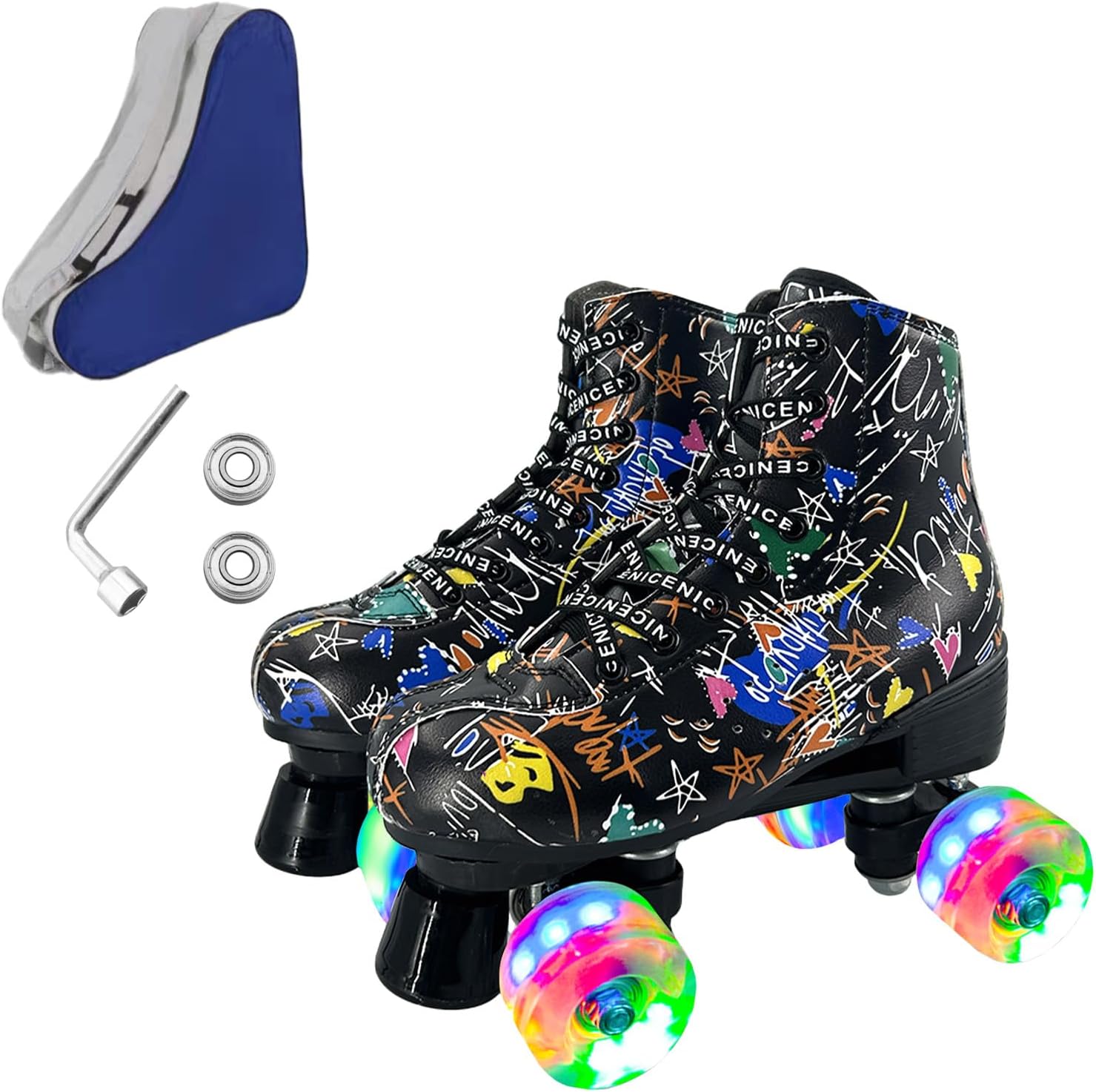 • Outstanding Design: Our premium wheels can shine when scrolling, no battery needed, the shiny wheels will make you stand out at the skating rink. With ergonomic high-top shoes and breathable fabric inside, you can totally feel the comfort during the skating