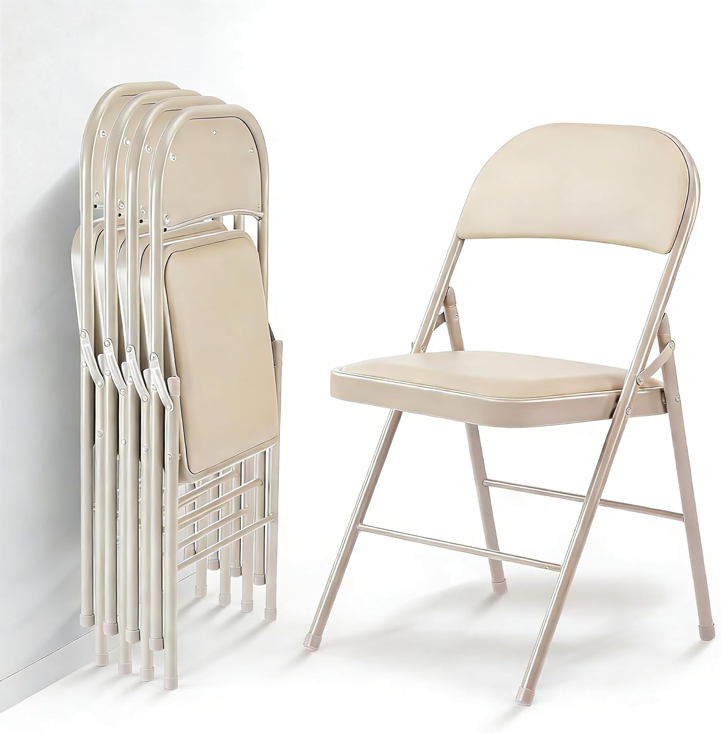 Simple Deluxe 4 Pack Folding Chairs with Leather Padded Cushion Seats & Durable Metal Frame, Comfortable, Foldable, Portable, Commercial Event Seat, Indoor Outdoor for Parties, Home, Office, Black