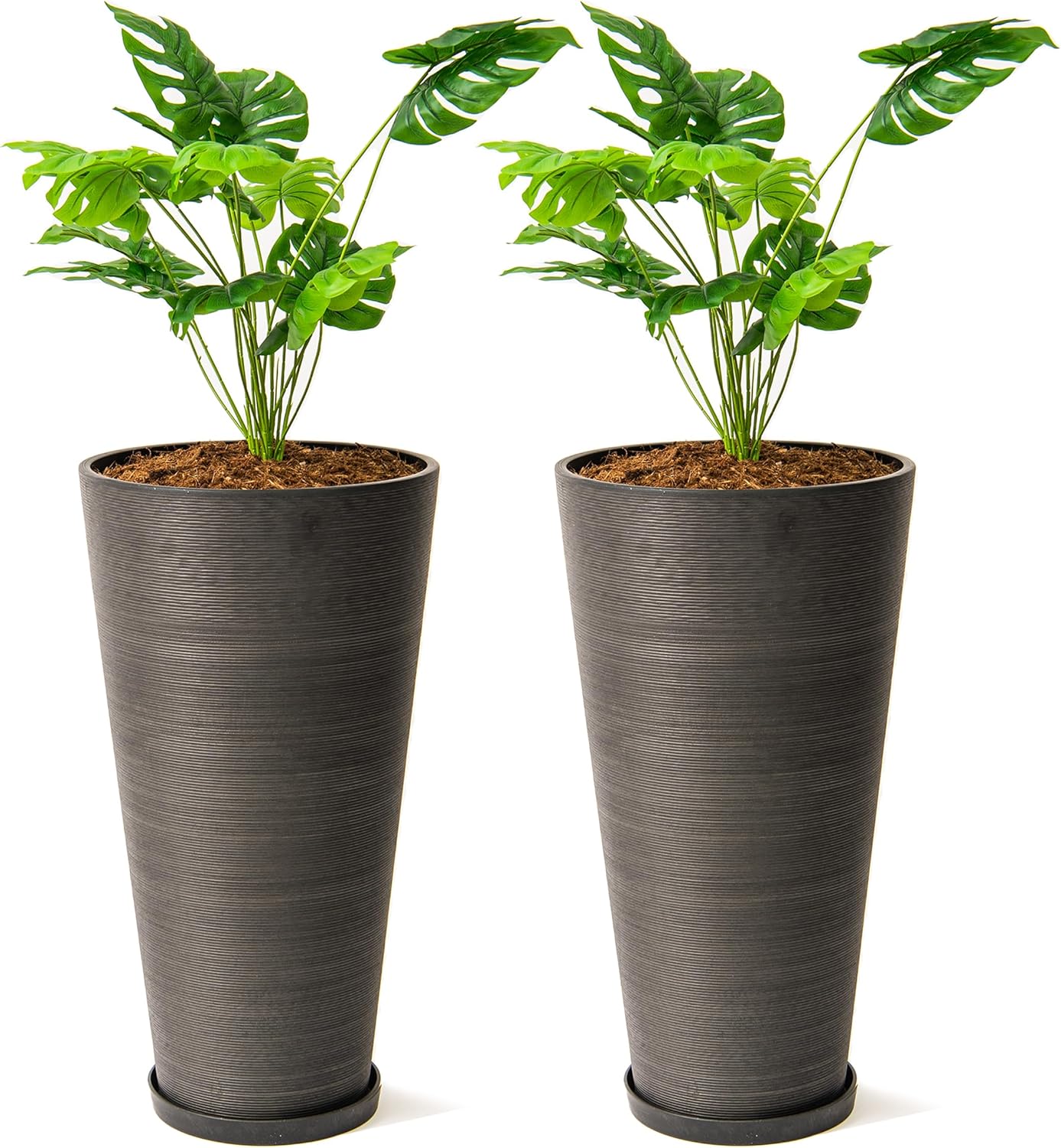 Elevate your gardening experience with XBrand's Modern Self-Watering Tapered Tall Round Planters, available in three stylish colors: white, black, and gray. These versatile planters are sold individually or as a set of two identical planters, suitable for both indoor and outdoor settings. Crafted with a engraved textured matte finish, these planters add a contemporary touch to any space. They feature a unique drainage system with an inside tray for self-watering capabilities, ensuring your plants receive optimal water and humidity for healthy growth. Whether you're a busy gardener or seeking effortless plant maintenance, these planters offer convenience and style. Ideal for creating symmetrical displays in your garden or patio, these planters are designed for stability and durability. Explore XBrand for modern and unique gardening solutions. Upgrade your plant care routine with these self-watering planters, adding a decorative touch to your surroundings.